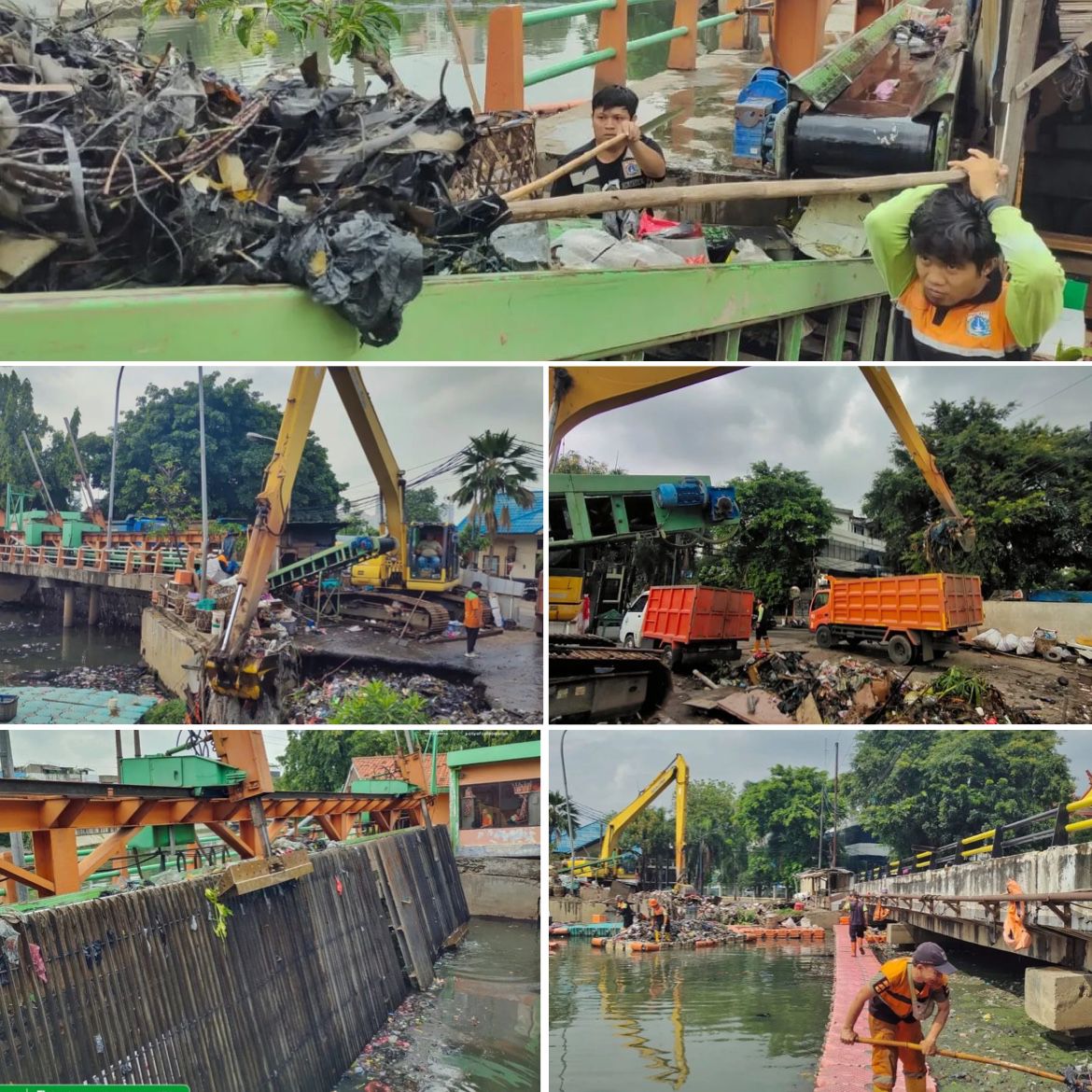 Dinas Lingkungan Hidup (LH) DKI Jakarta menyiagakan personel dan alat berat di setiap pintu air besar di wilayah Jakarta. Seperti pada Saringan Sampah Otomatis ME-H Sekretaris, Kecamatan Grogol Petamburan, Jakarta Barat