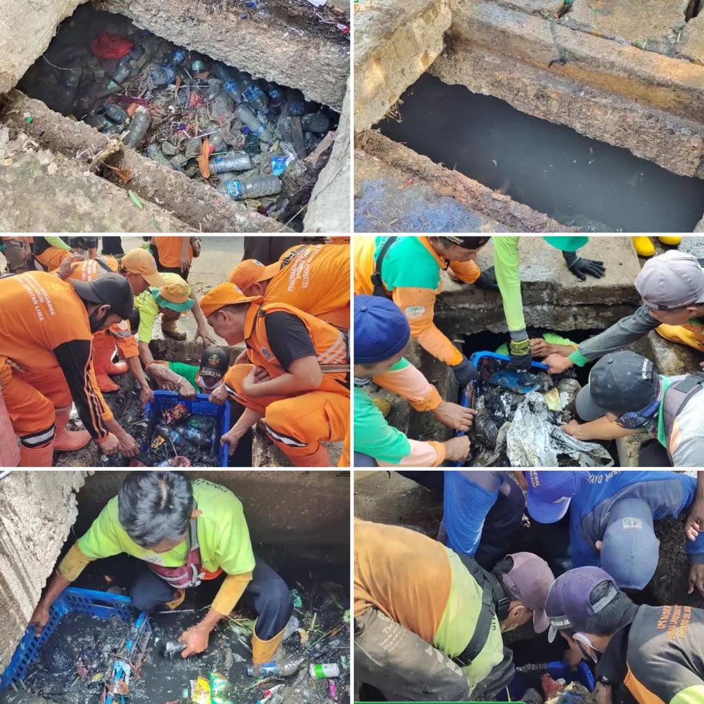 Sinergi Pasukan Pelangi DKI bergotong-royong menangani sampah saluran penghubung (PHB) Pasukan Orange DLH, PPSU, PasukanBiru.
