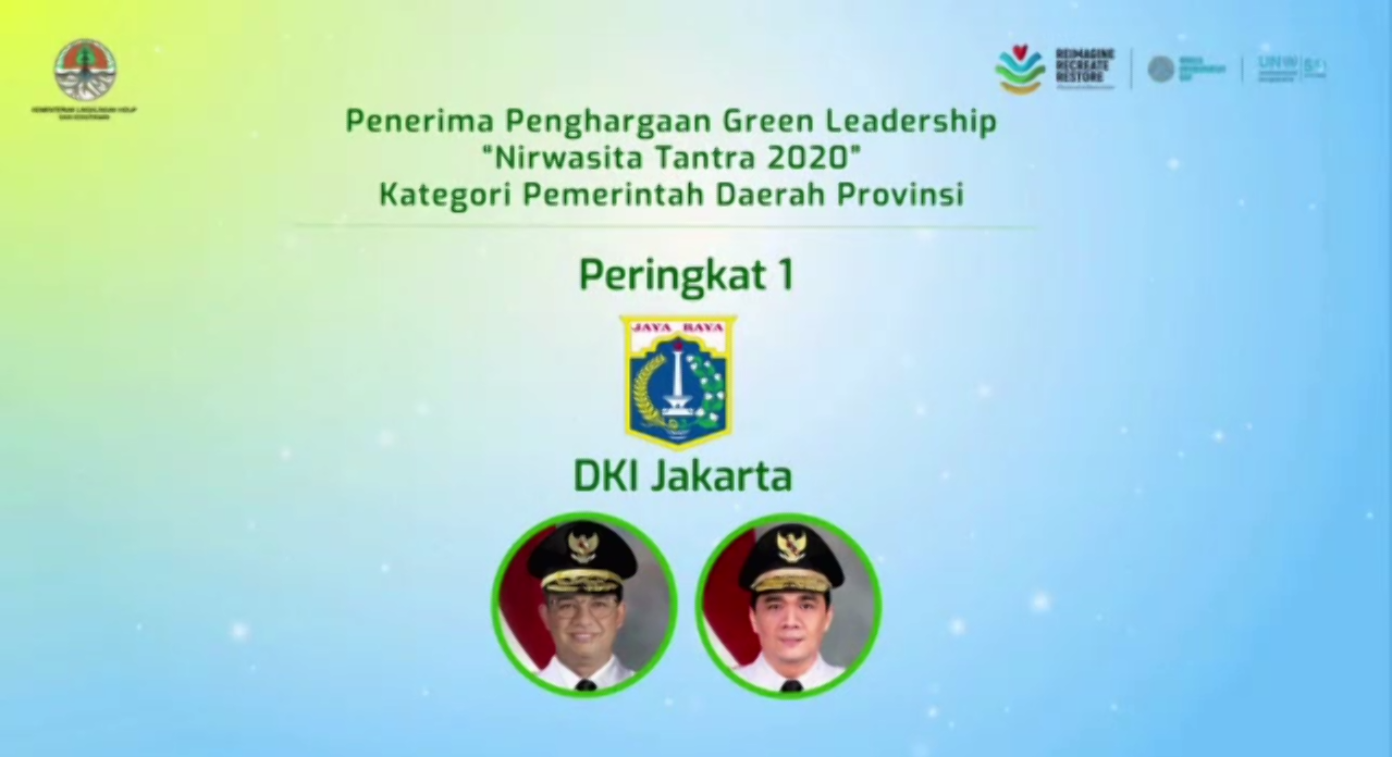 DKI Jakarta Menerima Penghargaan Green Leadership "NIRWASITA TANTRA 2020" Peringkat 1 Kategori Pemerintah Daerah Provinsi